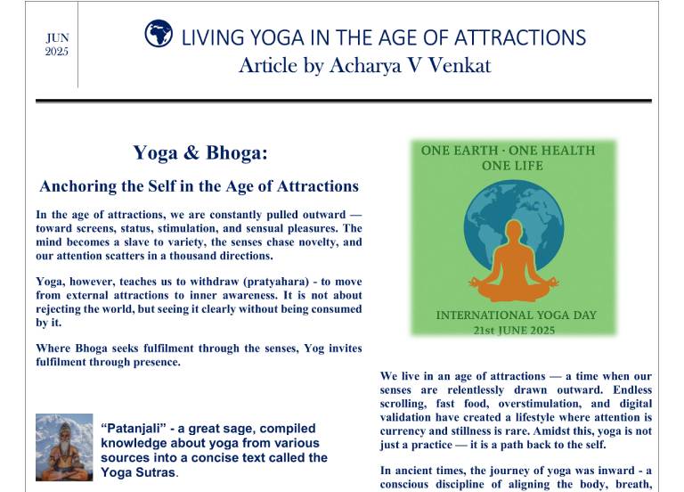 LIVING YOGA IN THE AGE OF ATTRACTIONS Article by Acharya V Venkat