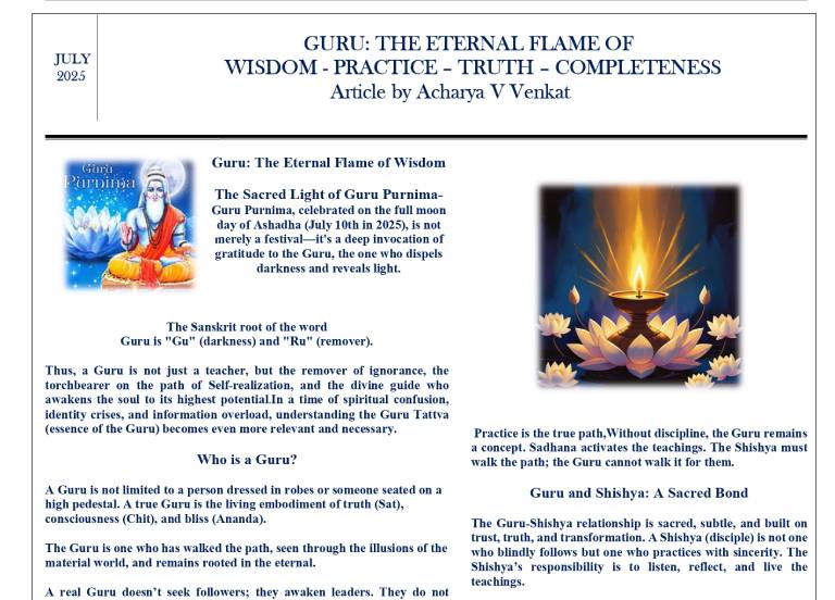 GURU: THE ETERNAL FLAME OFWISDOM – PRACTICE โ TRUTH โ COMPLETENESS Article by Acharya V Venkat