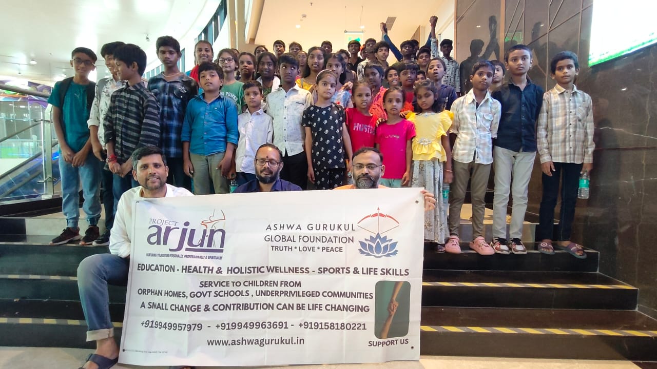 17th Aug 2025, kids from Ashwa Gurukul and Sankalp Foundation, experienced Narsimha movie at Aparna neo mall, nallagadla. sangareddy, Telangana.