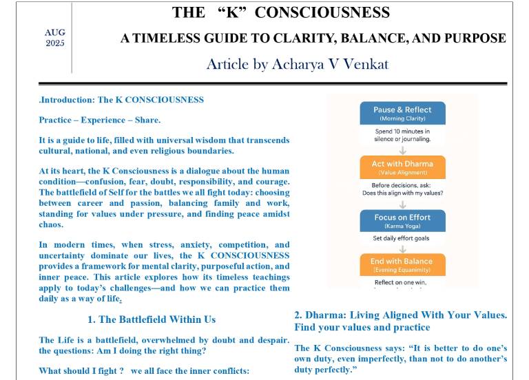 THE K CONSCIOUSNESS ARTICLE BY ACHARYA V VENKAT