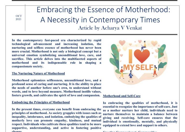 Motherhood ARTICLE BY ACHARYA V VENKAT-1