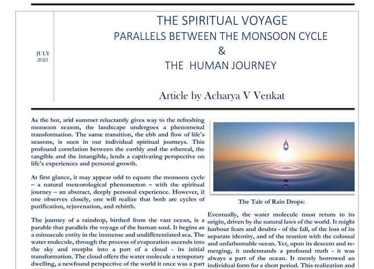 A spiritual Voyage in the Monsoon Article by Acharya Venkat